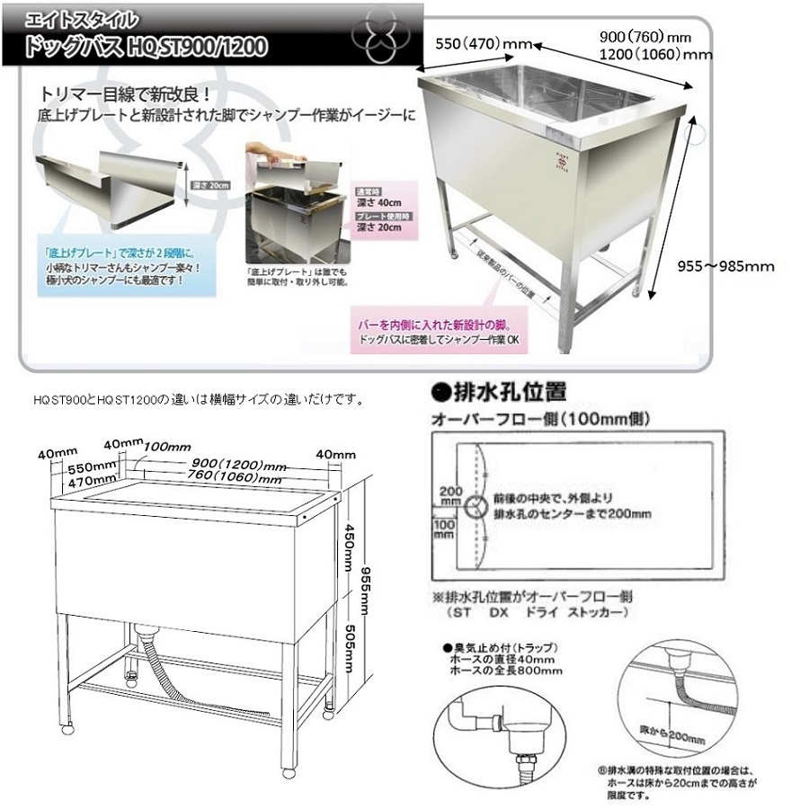 | 製品名 | 【当店オススメ】【代引き不可商品】ハチコウドッグバス エイトスタイルHQST-1200トラップ・底上げプレート付 |