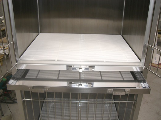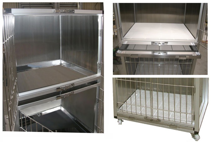 各部屋に引出タイプのステンレス製トレーとビニールコーティングしたステンレス製網スノコが付属しています。