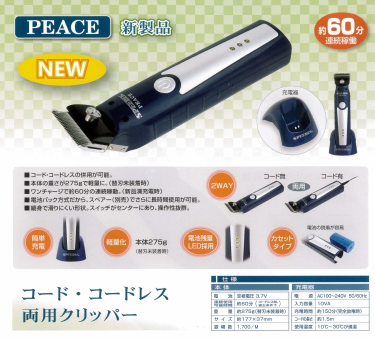 スピーディック コード・コードレス両用バリカン PEACE <配送区分A>