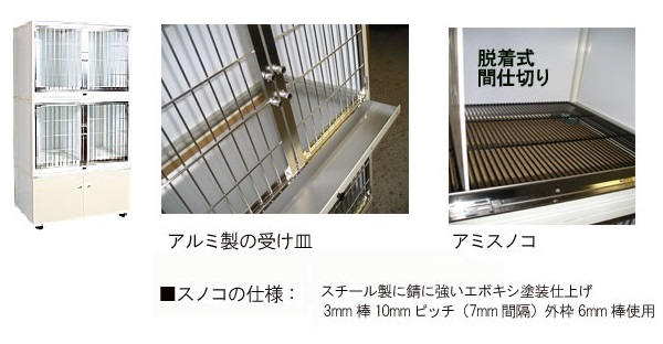 | 製品名 | <新素材アルミ製業務用犬舎> TKM タキメタル二段犬舎キャビネット付 |