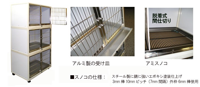 | 製品名 | <新素材アルミ製業務用犬舎> TKM タキメタル三段犬舎 |