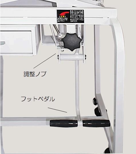 高さが決まったら調整ノブを右に回して固定します。左に回すと下がります。