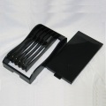 ・清潔感あるクリア、汚れが目立にくいブラックの2色 ・5丁のシザーとコーム他が収納できます。 ・底部がはずれて毛屑が排出でき清潔です。 ・材質は熱、衝撃に強いポリカーボネイト製です。 ・厚みと重みがあり安定性に優れています。 熱に強く丈夫で安全なシザープレート 【超売れ筋】使いやすいシザープレートCA-8【頑丈】【清潔・衛生】【シザープレート】
