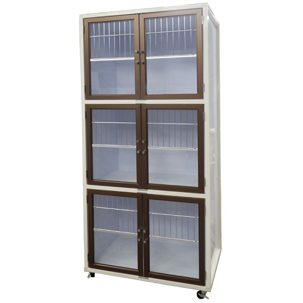 <業務用犬舎> ペットマンション三段タイプHWDB-800GN ダークブラウン扉